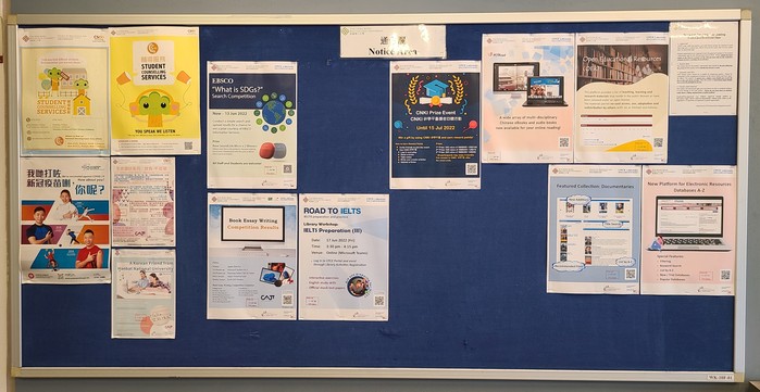 公用地方设有告示板,向CPCE教职员和学生发布消息,并让校园使用者了解各样活动,以鼓励他们参与。